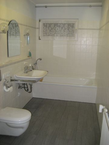 Badsanierung mit neuer Duschwanne, Fußboden, Wand- und Bodenbelägen.