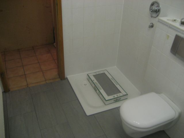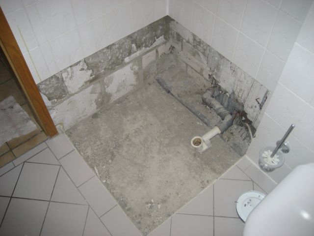 Demontage der alten Dusche und Anpassung für neue Duschwanne.