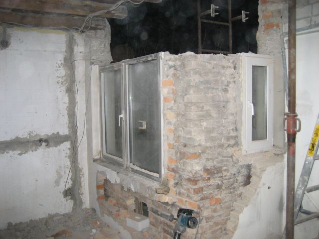 Umbau eines Geschäftshauses. Durchbrüche und neue Fenster
