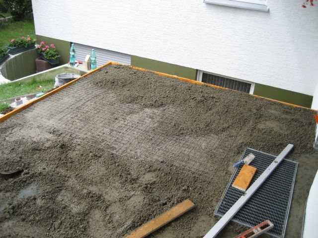 Aufbringung des Zementestrichtes mit Gefälle, welcher zusätzlich speziell versiegelt wurde um vor Feuchtigkeit zu schützen.