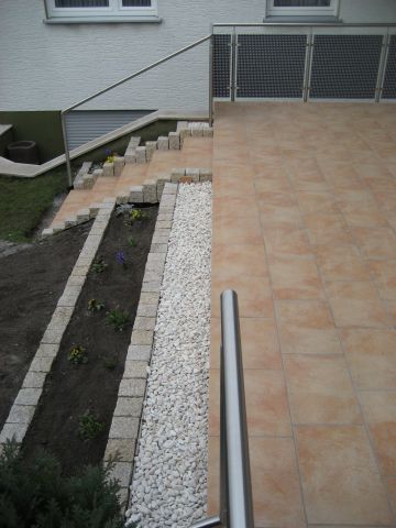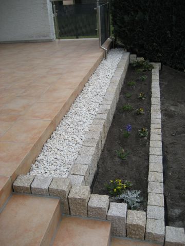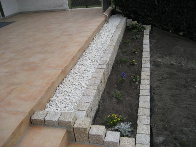 Durch Abtrennung der einzelnen Blumenbeete mit massiven Granitblöcken wurde die Gartenanlage optisch aufgewertet.